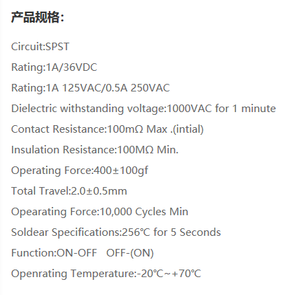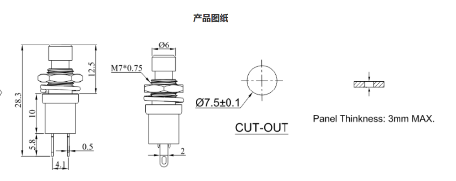 PB按鍵開(kāi)關(guān)參數(shù)及圖紙